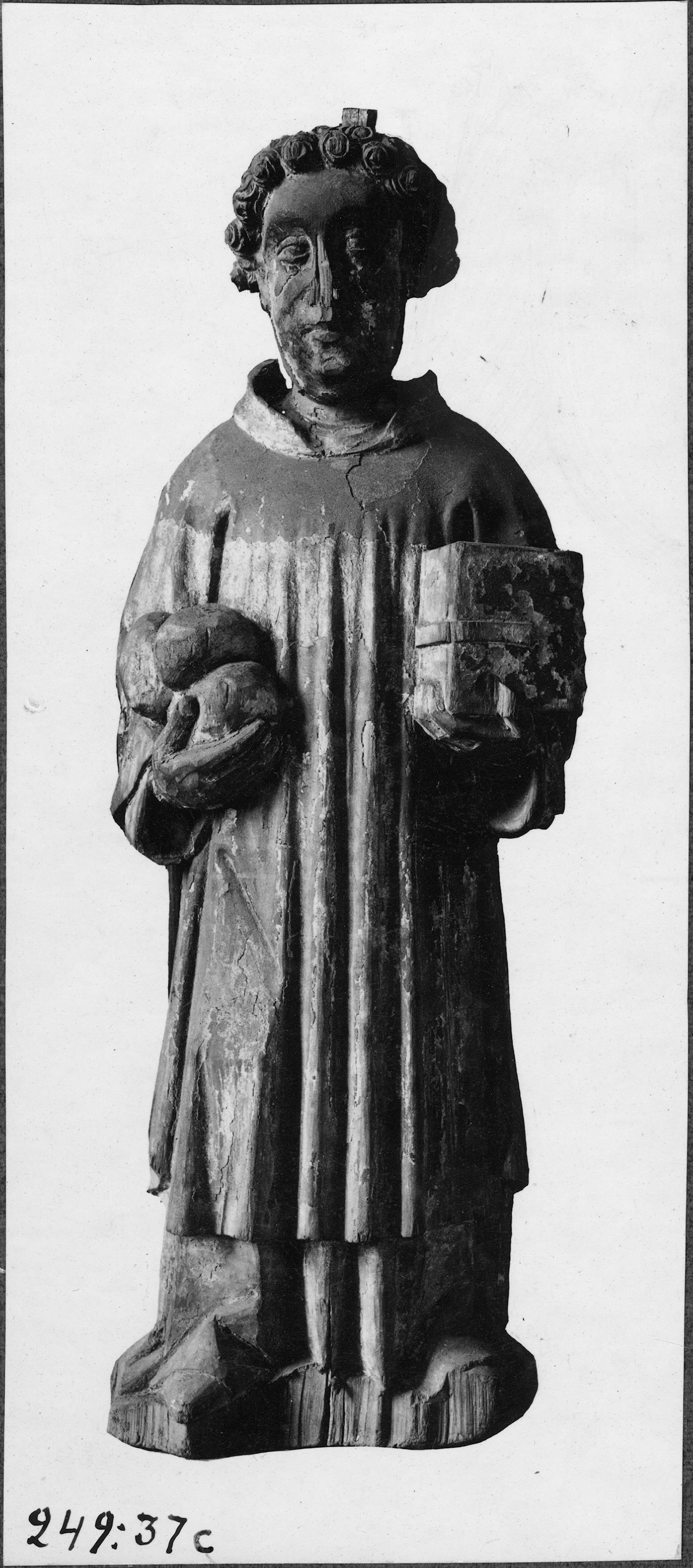 Skulptur, föreställande Sankt Stefan, ek, omkring 1500.