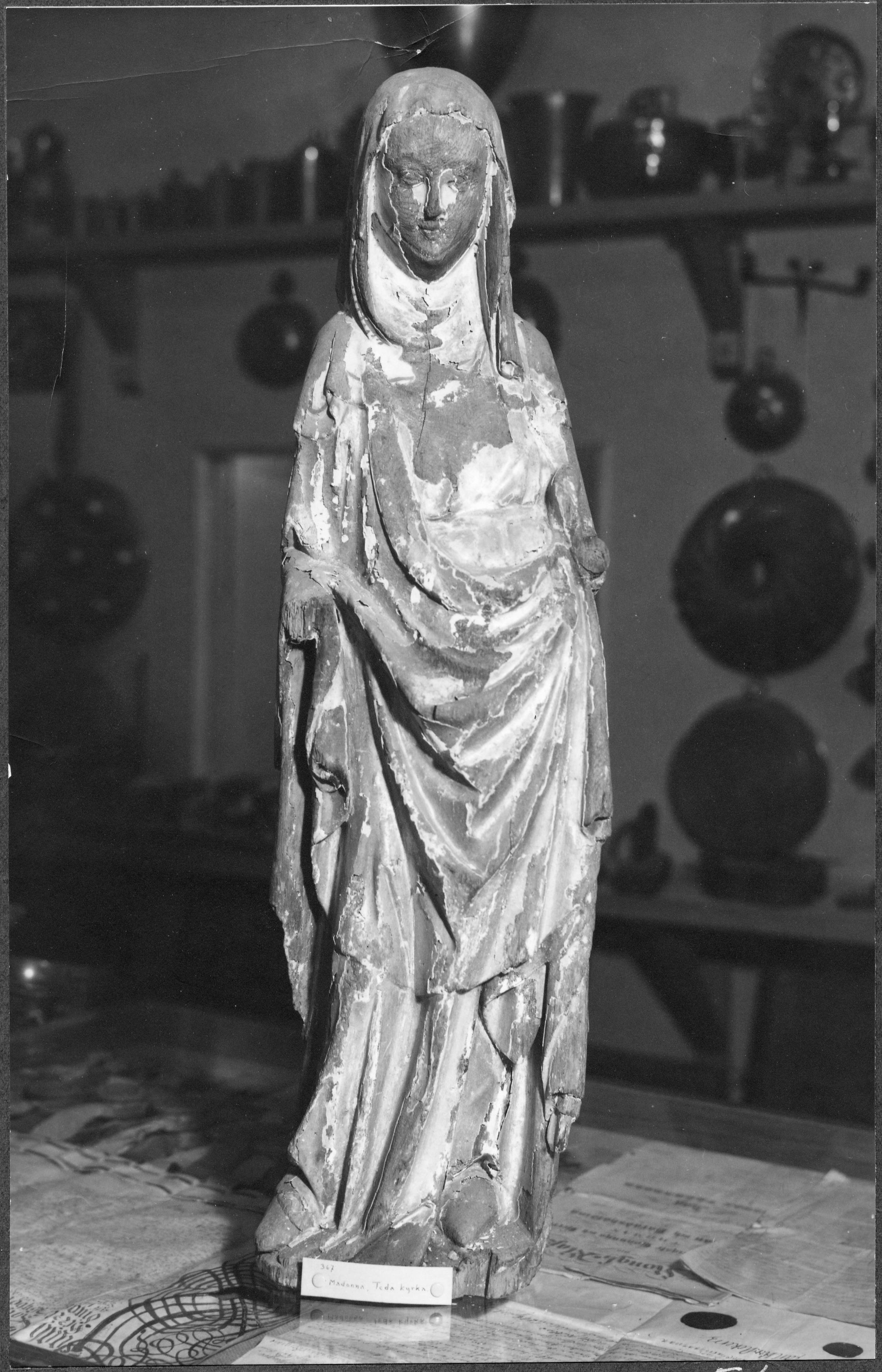 Skulptur, trä, kvinnligt helgon, 1300-talets förra hälft.
