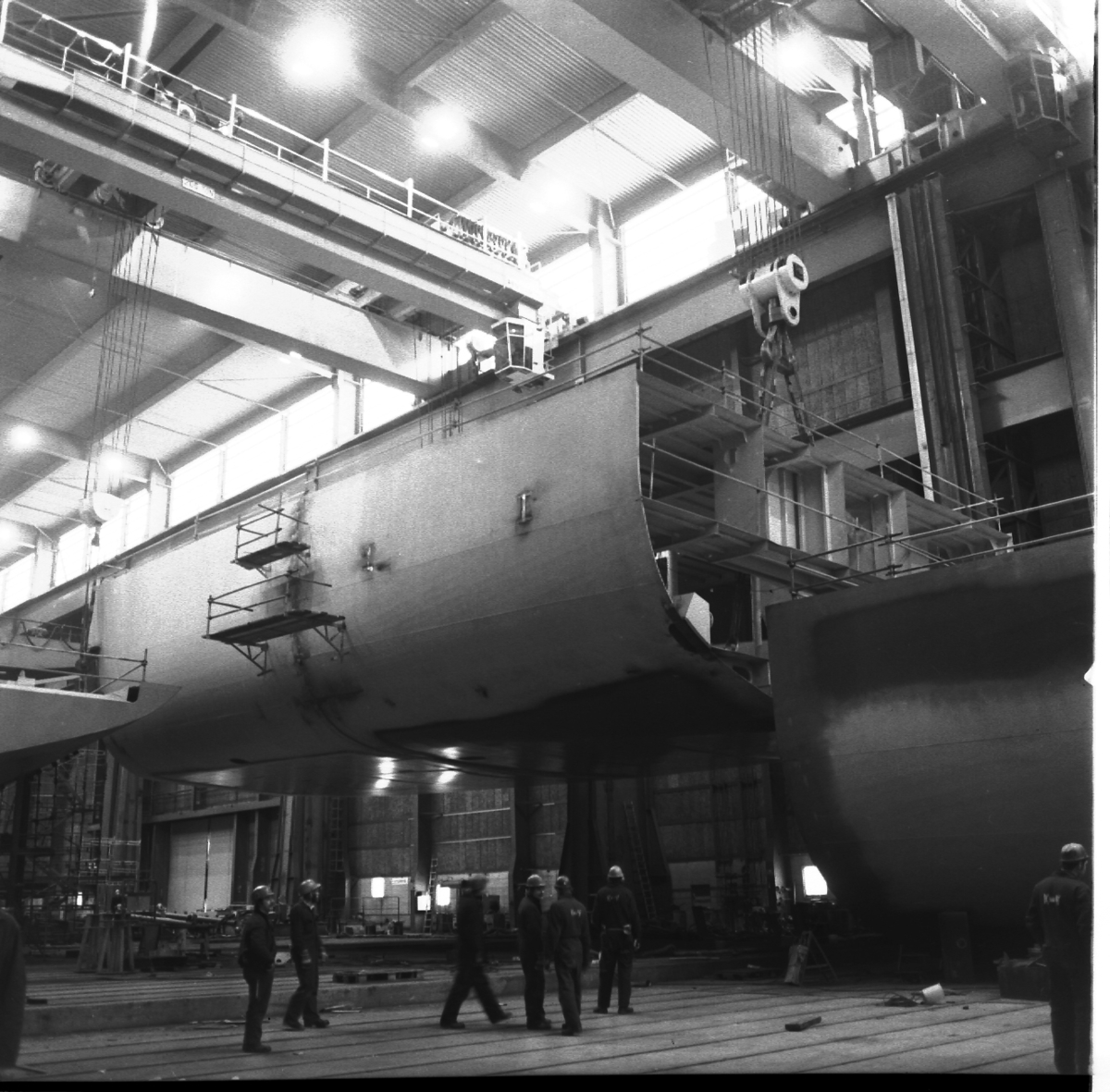 Titel: Carlskrona Sektioner till minfartyget Carlskrona lyfts på bädden