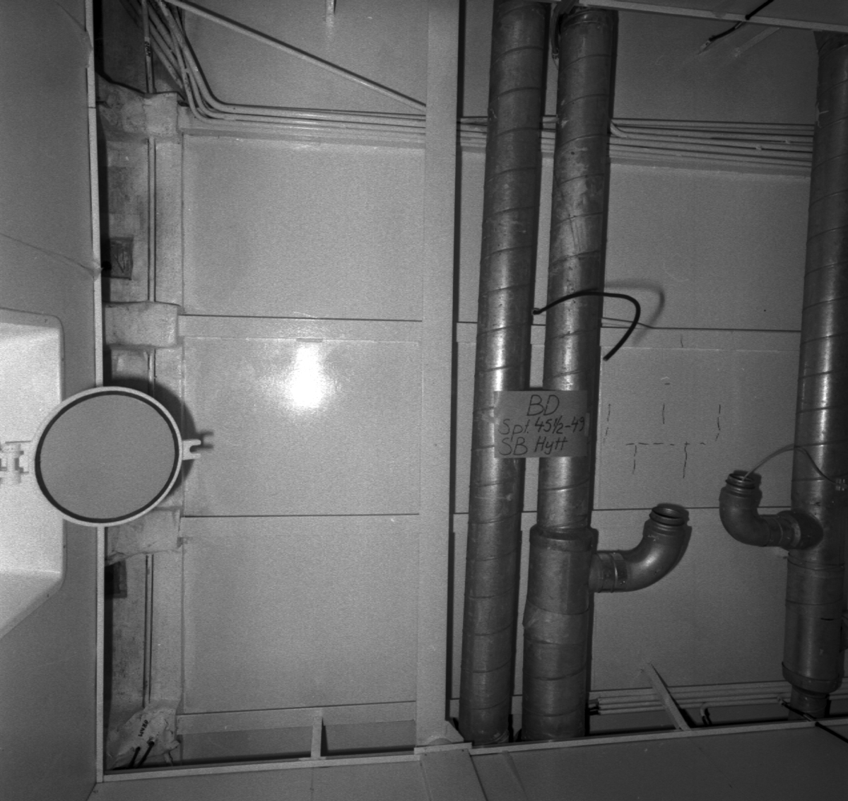 Interiör av minfartyget Carlskrona, rörarrangemang