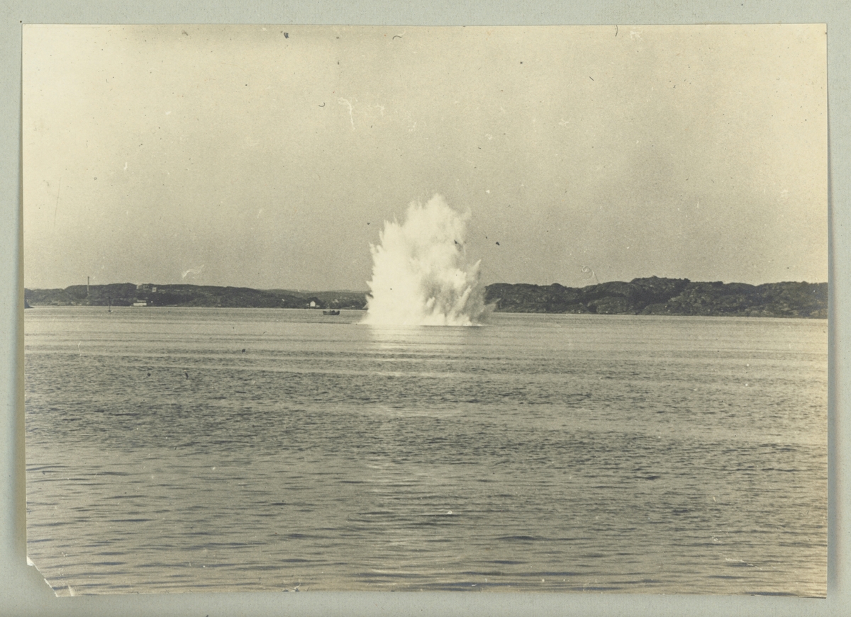 Bilden visar sprägning av bottenmina vid inloppet till Nya Älvsborg fästning.