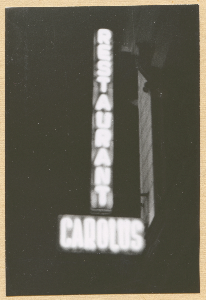 Bilden visar ljusreklamen från restaurang "Carolus"