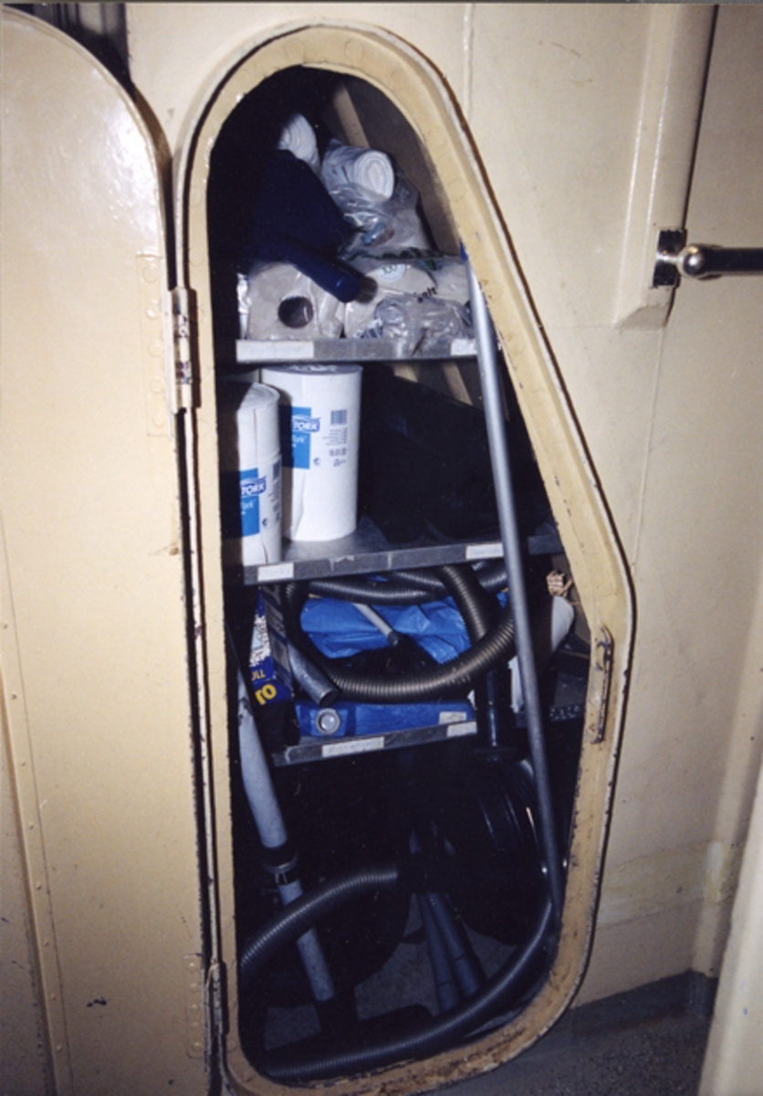 utanför NS hytt under uppgången till däck finns fartygets rengöringsmaterial
