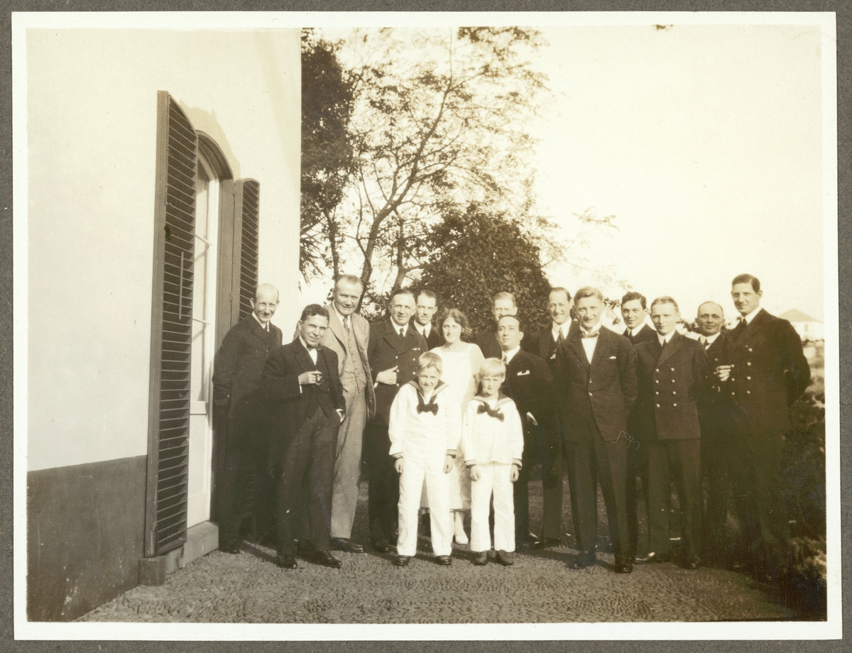 Bilden föreställer en grupporträtt som togs under besöket av Fylgias fartygsbefäl hos familjen König.