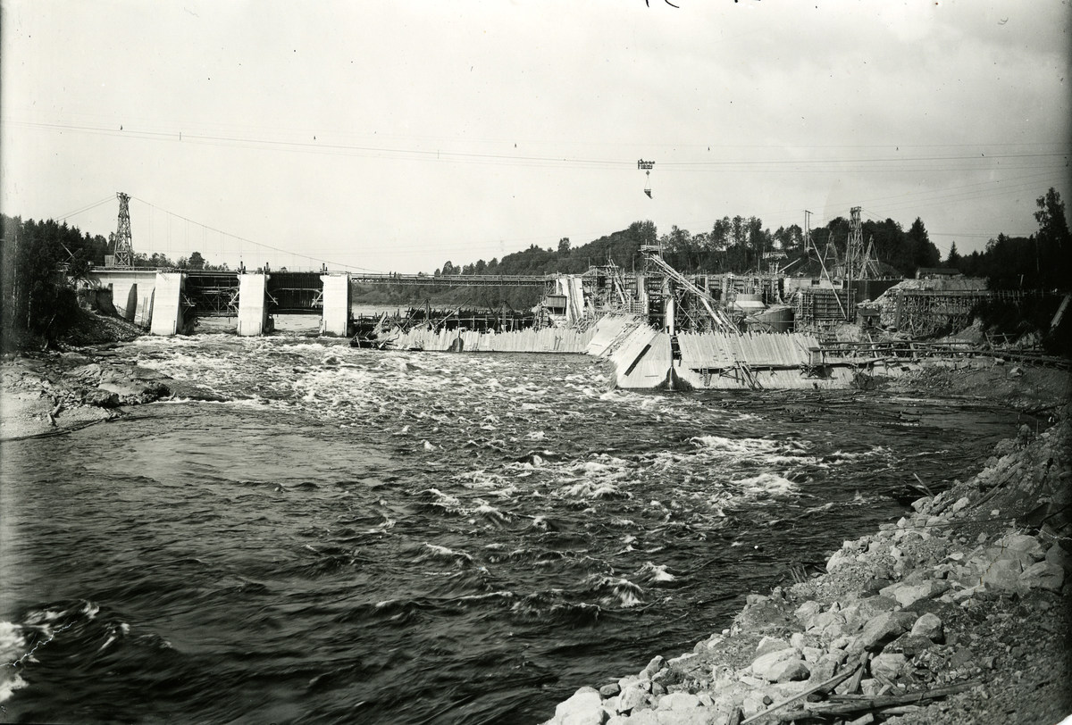 Arbetsbilder från vattenrallare Egon Frisk, byggnation av vattenkraftverk vid Laforsen.