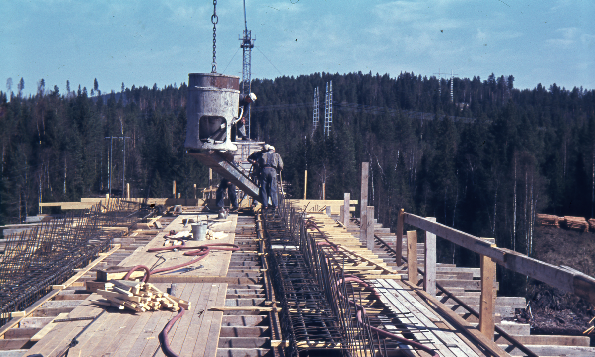 Titel: Arbetsbilder från vattenrallare Egon Frisk, tagna i samband med byggnation av bro intill vattenkraftverket i Laforsen 1953.