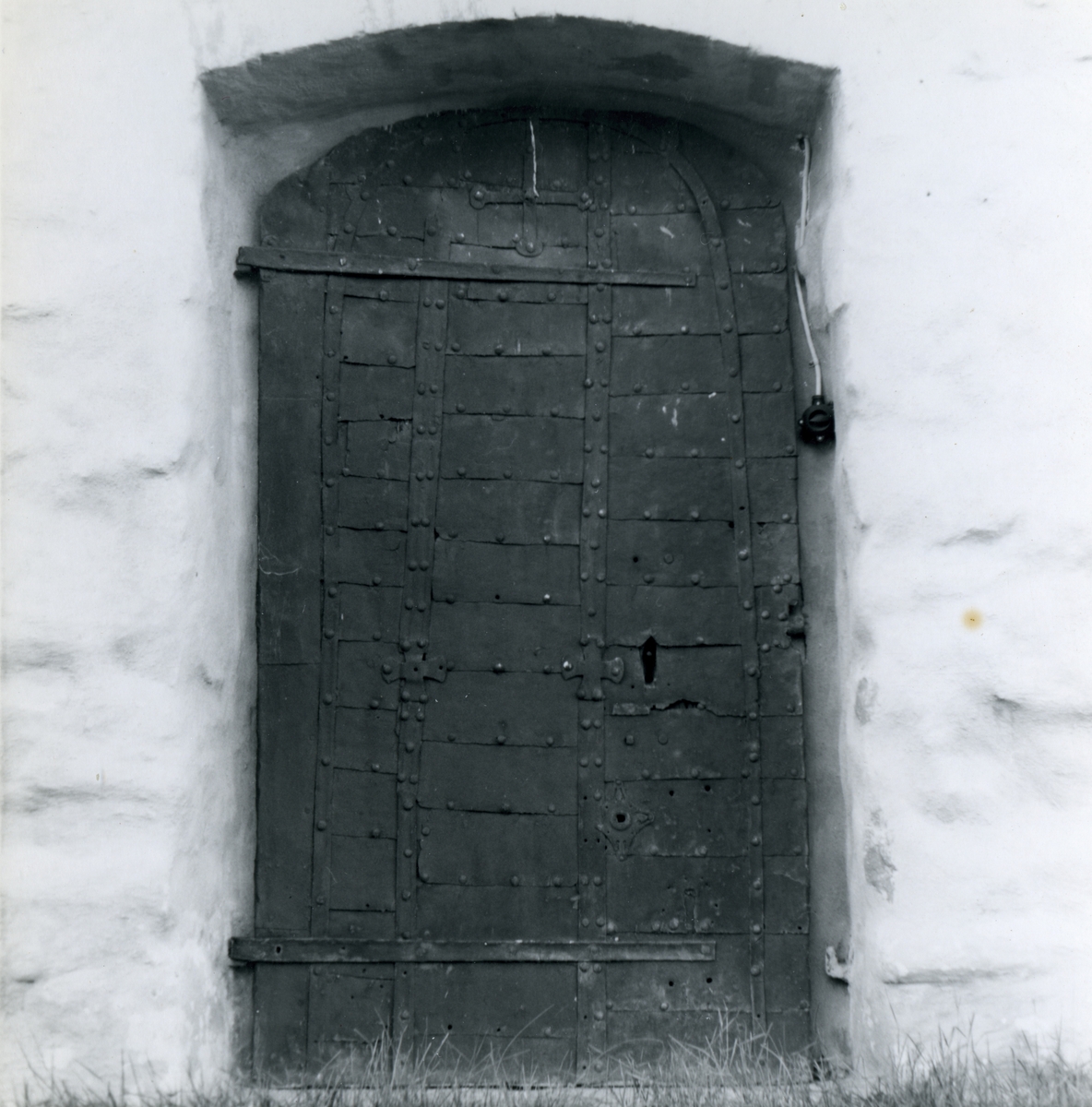 Gamla kyrkans dörr senare flyttad till källaringången på östsidan.