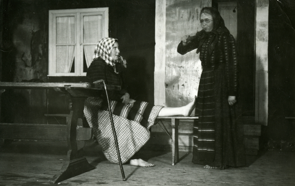 Skrypsmomma botar en sjukt ben. Scen ur pjäsen "Det var en gång".