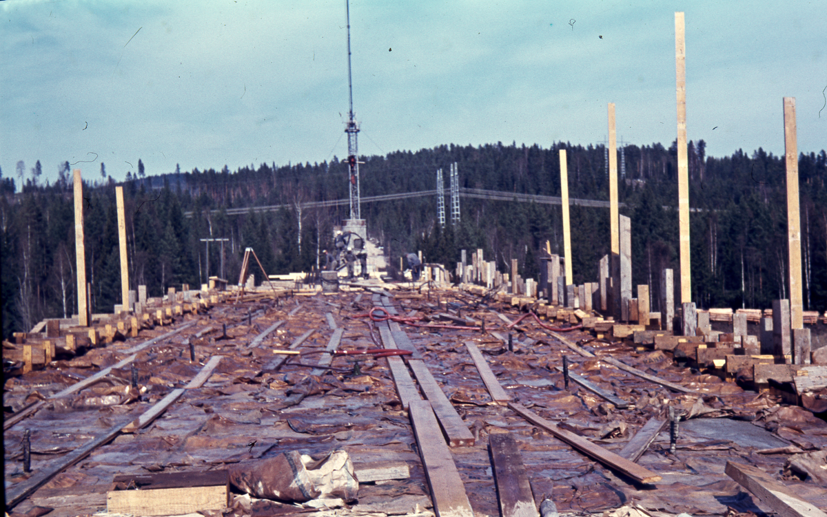 Arbetsbilder från vattenrallare Egon Frisk, tagna i samband med byggnation av bro intill vattenkraftverket i Laforsen 1953.