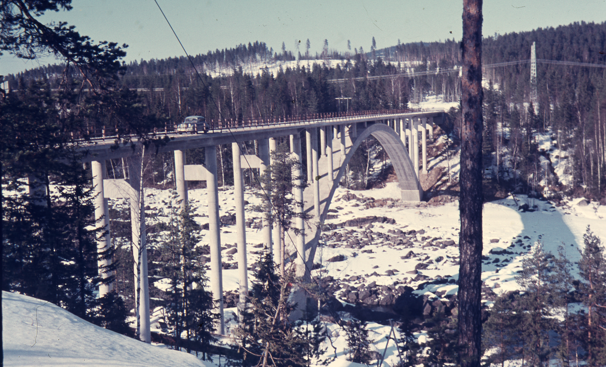 Titel: Arbetsbilder från vattenrallare Egon Frisk, tagna i samband med byggnation av bro intill vattenkraftverket i Laforsen 1953.