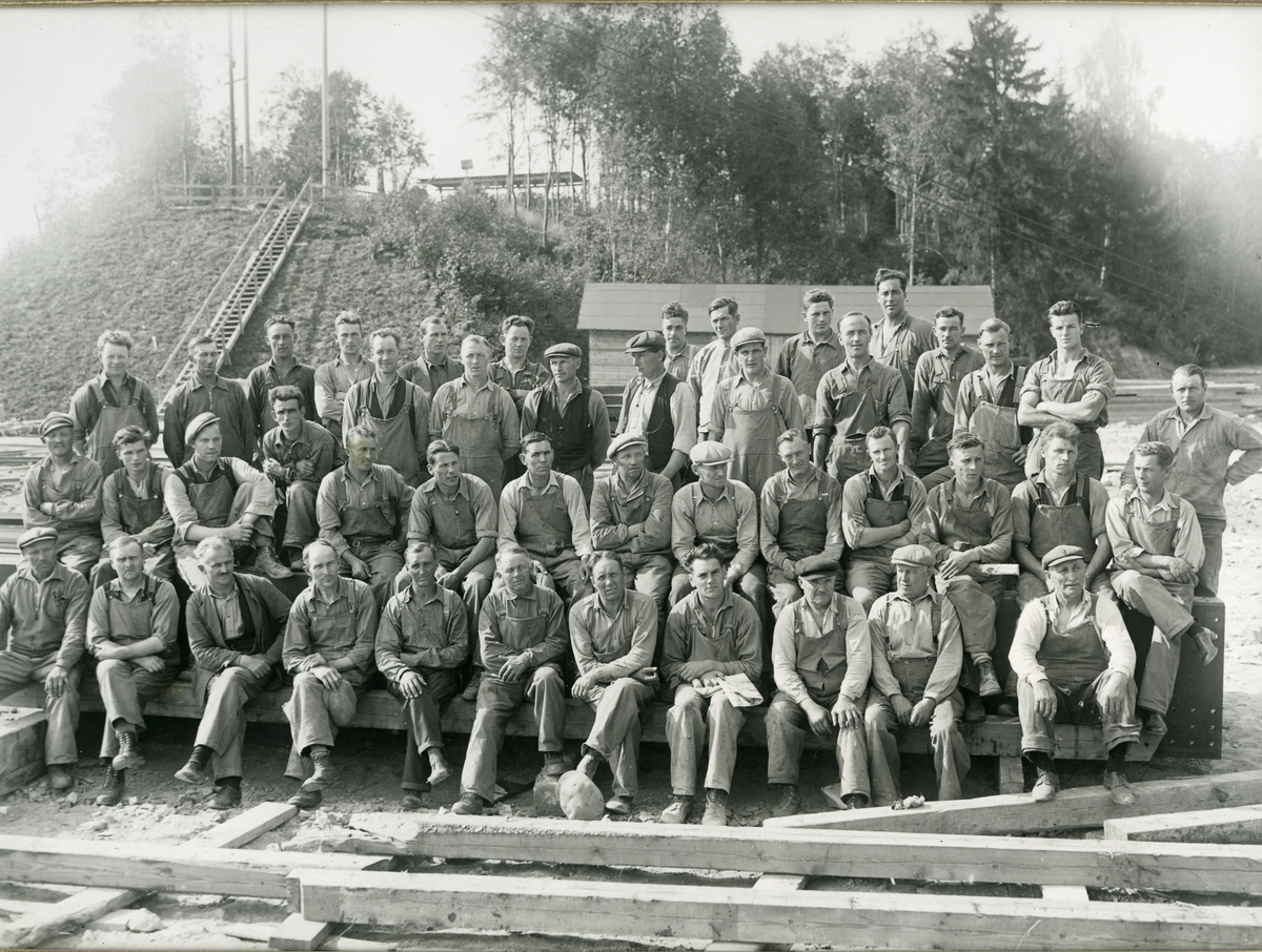Arbetsbilder från vattenrallare Egon Frisk, träarbetslag vid Långhagforsen, 1936-1938.