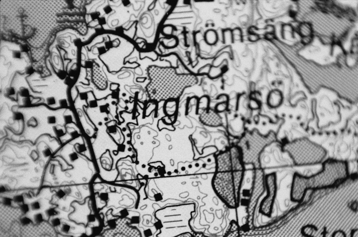 Detalj av karta på väggen. Distansarbete nr 8 och 9. >>
