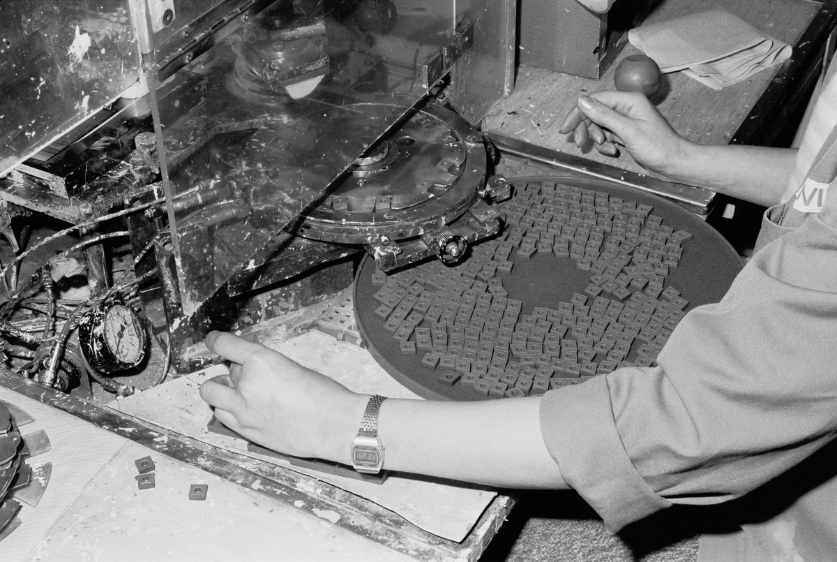 FÄRGMARKERING. Färdigmärkta skär placeras i ask. >>