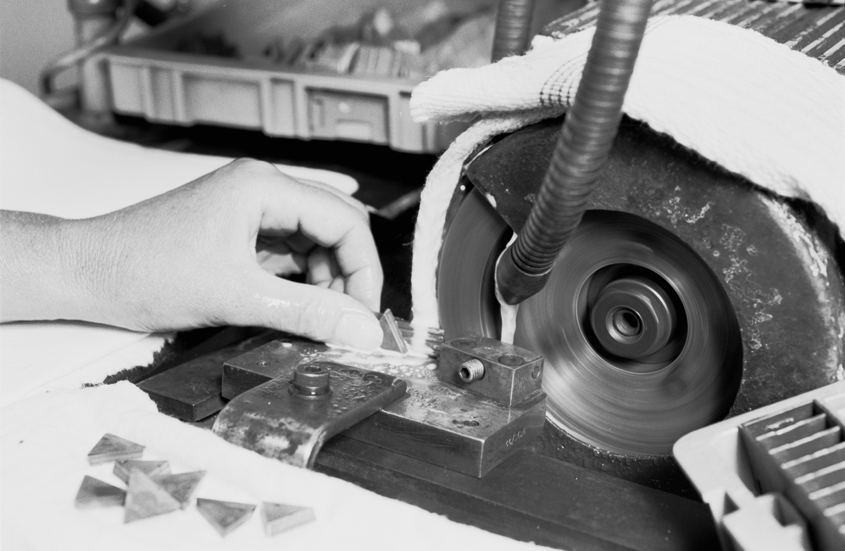 SLIPNING AV FRÄSSKÄR Skäret riktas upp mot anhåll. >>