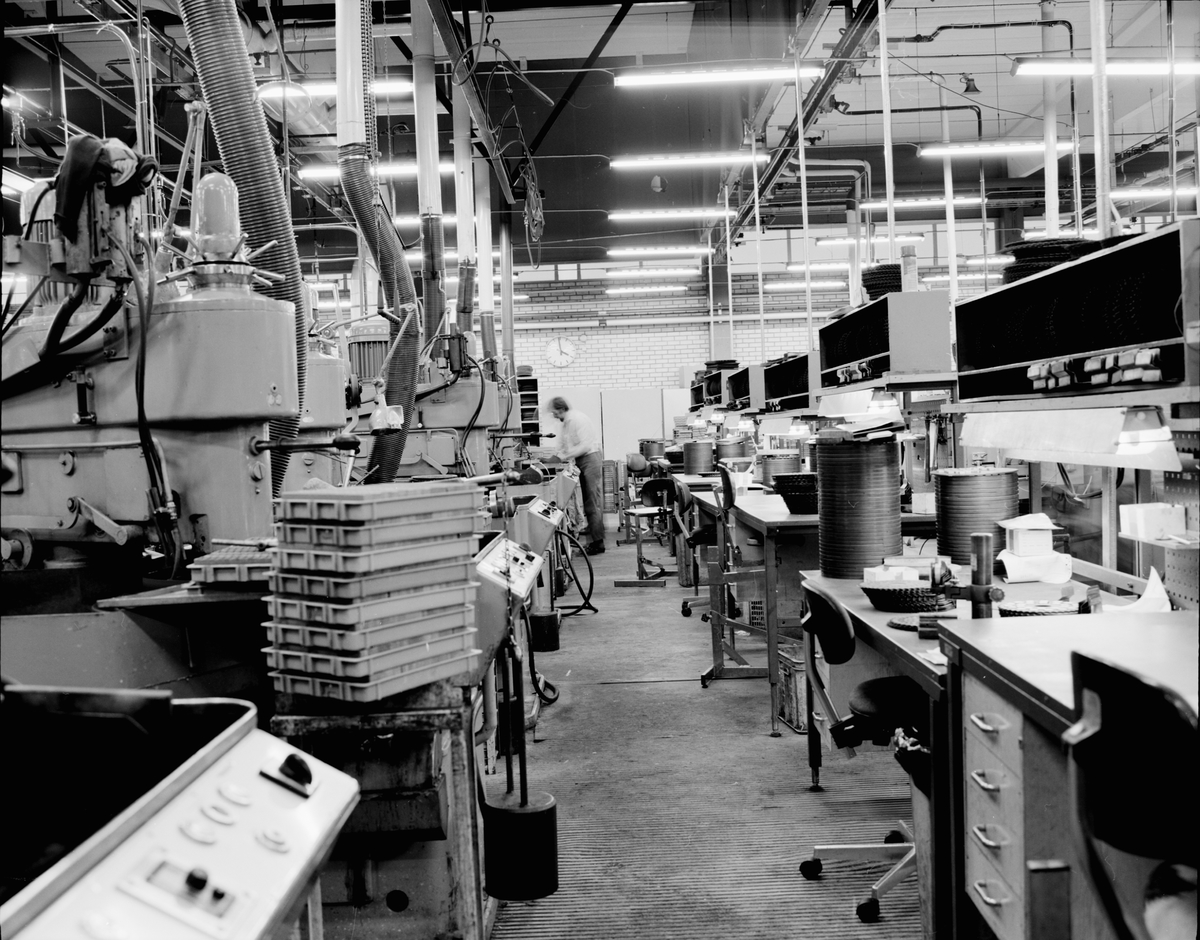 SLIPNING AV SVARVSKÄR. Översiktsbild av ett flertal planläggningsmaskiner. >>