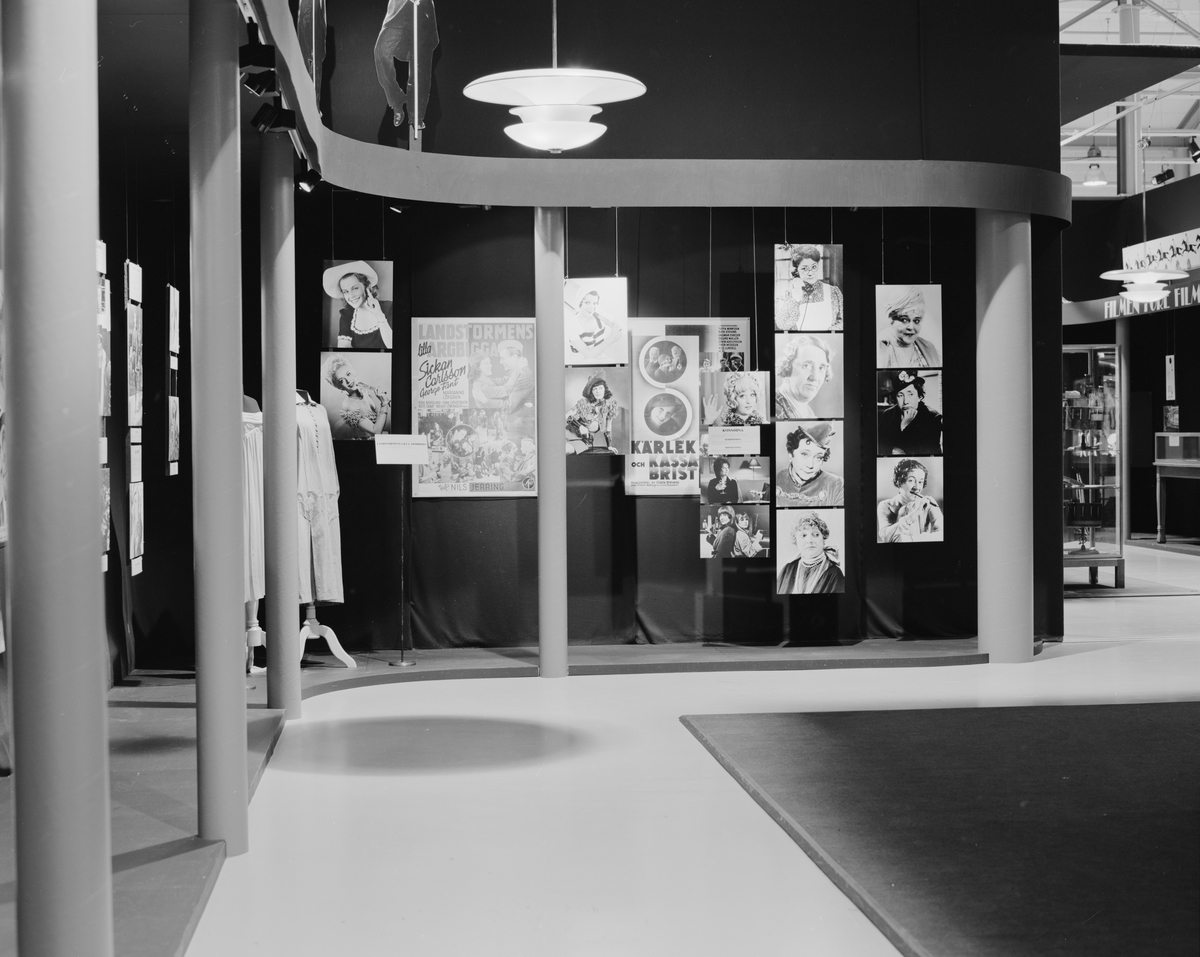 Vägg med "Svenska filmkomiker". Inför filmen 100 år gjordes en utställning "Magiska Bilder komik, erotik, optik" den 26 april - 12 jan 1997. Producerad av Svenska Filminstitutet i samarbete med Telemuseum och Tekniska Museet. Formgivning Mikael Sylwan och Ulrika Wolff. Idé och koncept Anna-Lena Wibom.