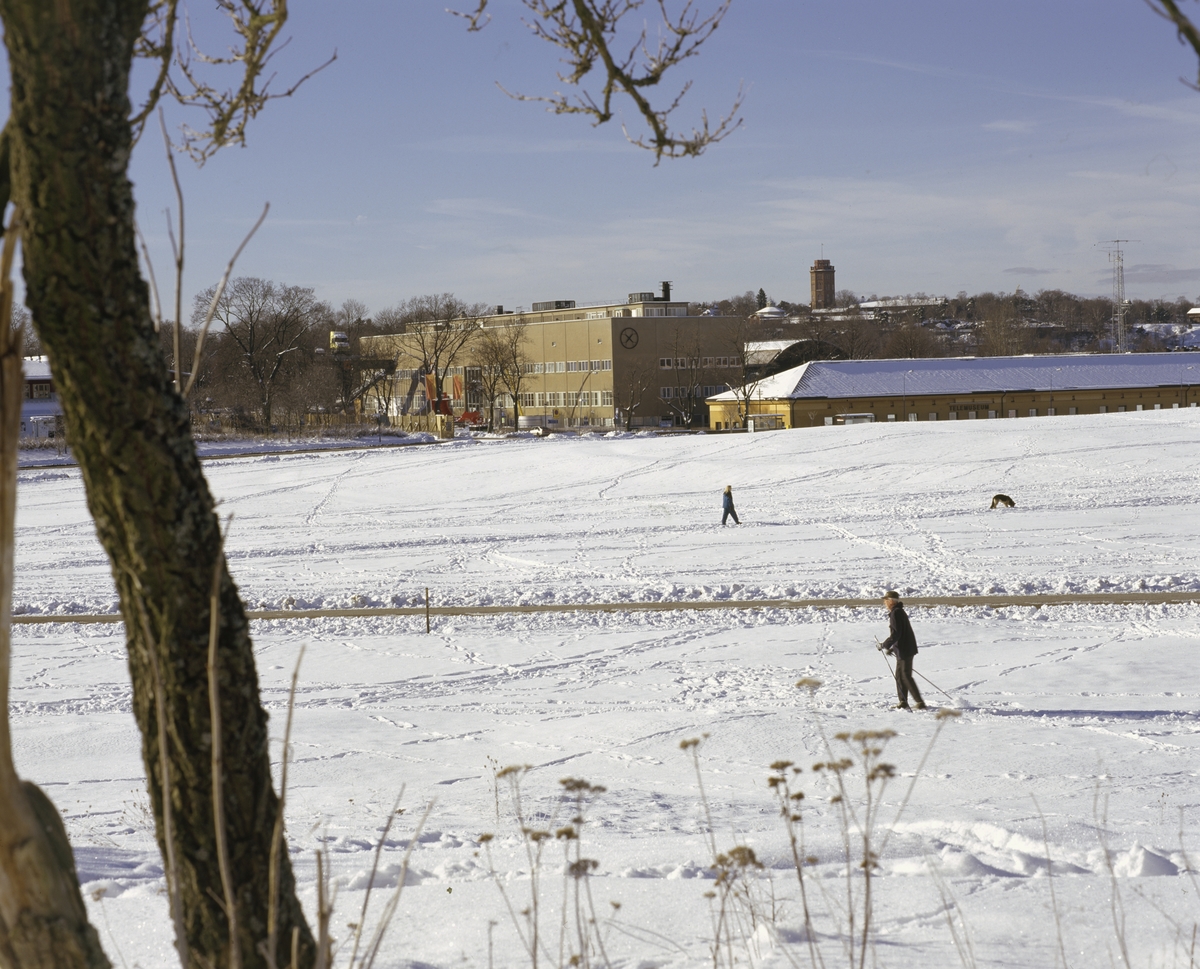 Titel: Vinterbild av Tekniska Museet, sedd från Gärdet.