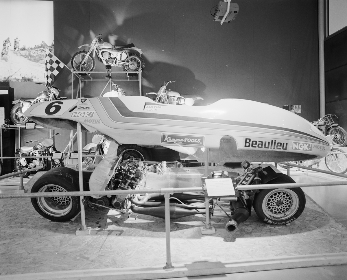 Dokumentation av "Motorcykeln 100 år" i Wallenberghallen. Sidvagnsracer.