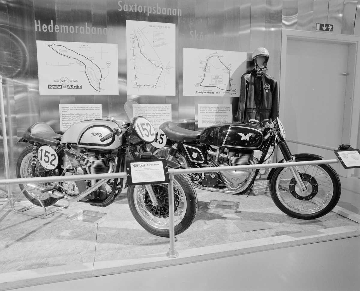 Dokumentation av "Motorcykeln 100 år" i Wallenberghallen. Norton, Matchless.