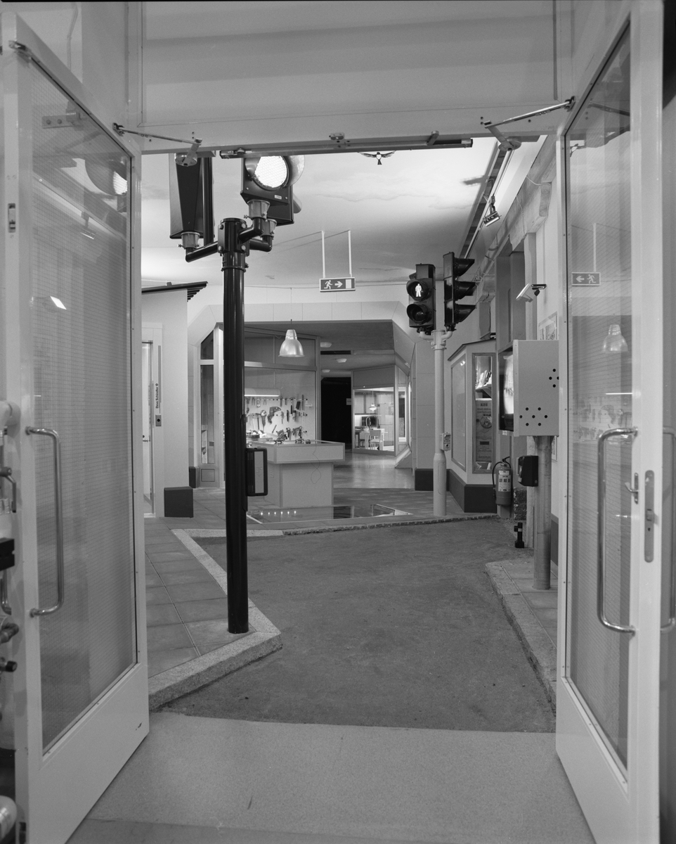 Dokumentation av utställningen "Tunnelbanetorget", Elkraftsmuseet. Entré med trafiksignaler.