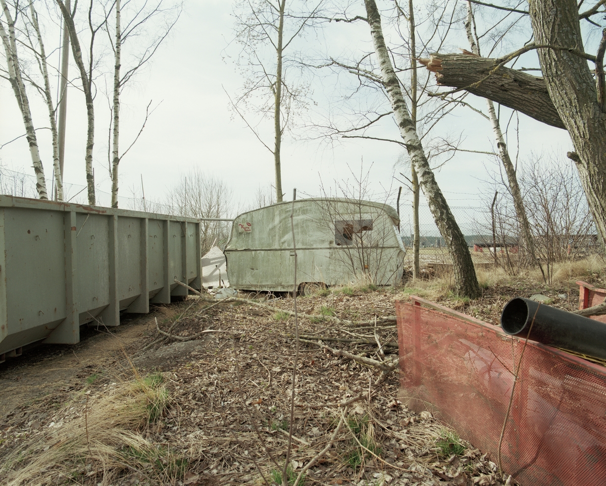 Bildtext: På området finns en anläggning som har haft gokart mm. Detta är en övergiven husvagne som bar spår efter olika tävlingar.