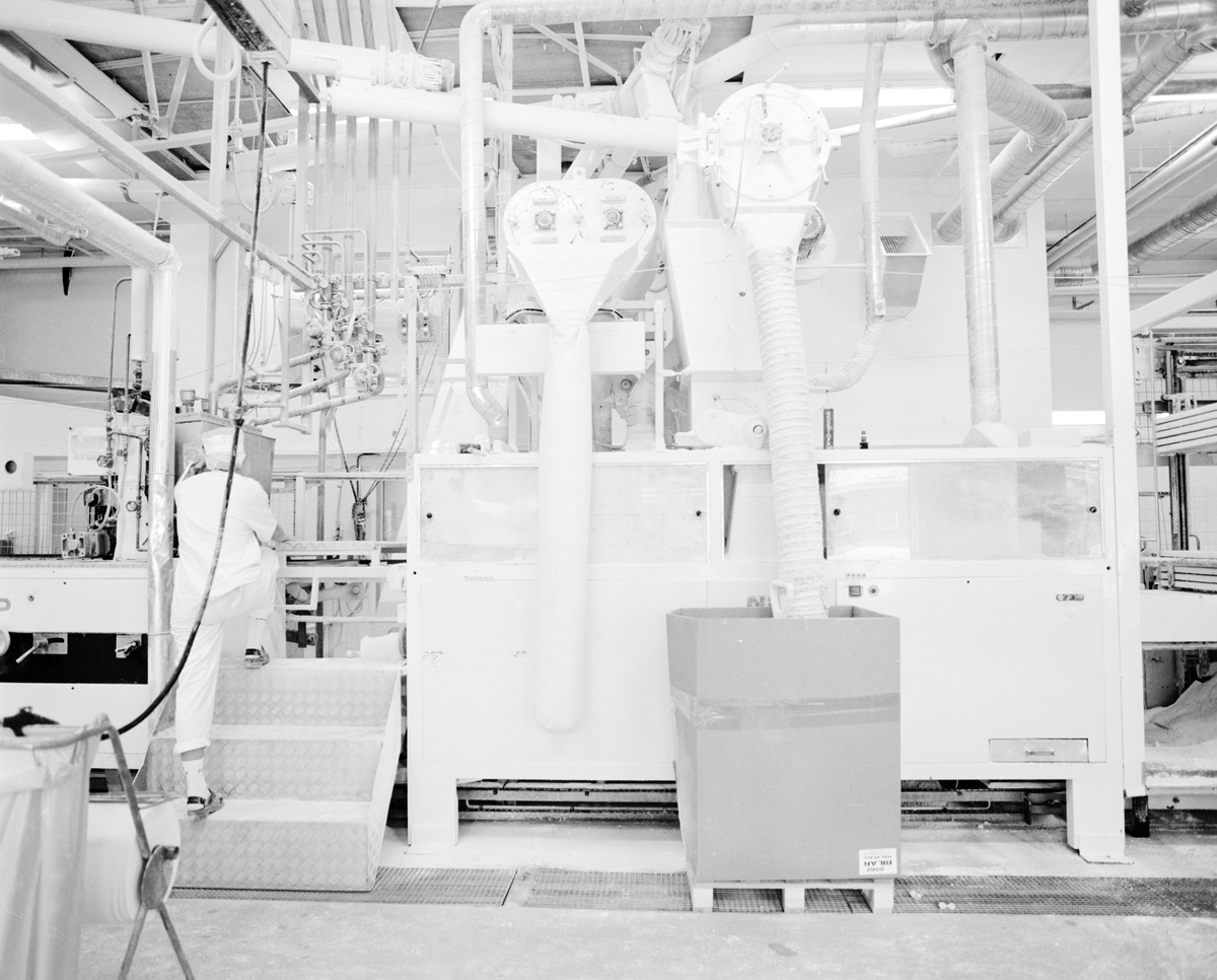 Puderdelen NID5, bilden visar de två puder (mjöl) siktar som är belägna uppe på maskinen. Sikten siktar mjölet från ev? träflisor från gjutlådor m.m. Siktduken i sikten till höger (den helt runda) måste ibland bytas ut, det händer att det går hål i dessa siktdukar. Sikten till vänster är gjord av rostfritt stål.
