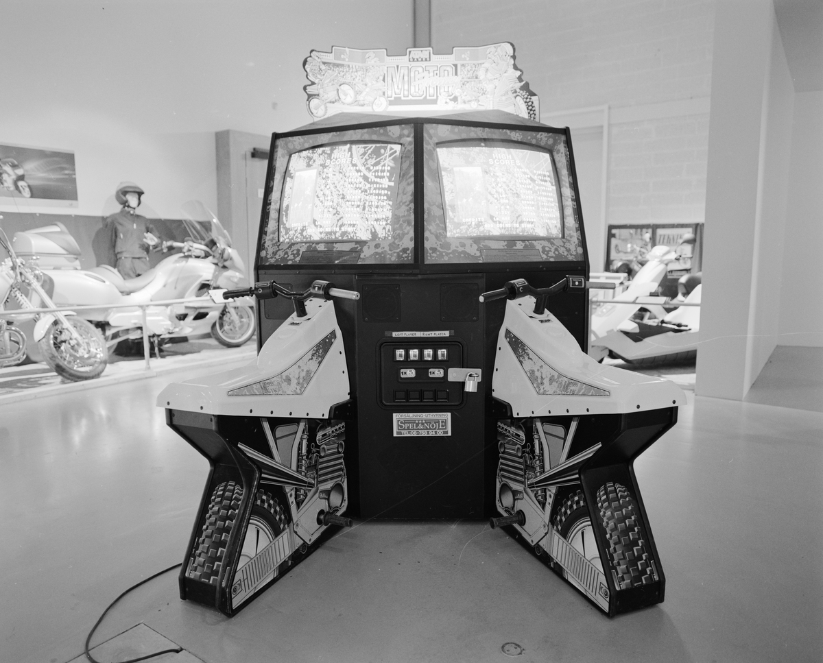 Dokumentation av "Motorcykeln 100 år" i Wallenberghallen. Spelautomat med mynt, "lek-mc".