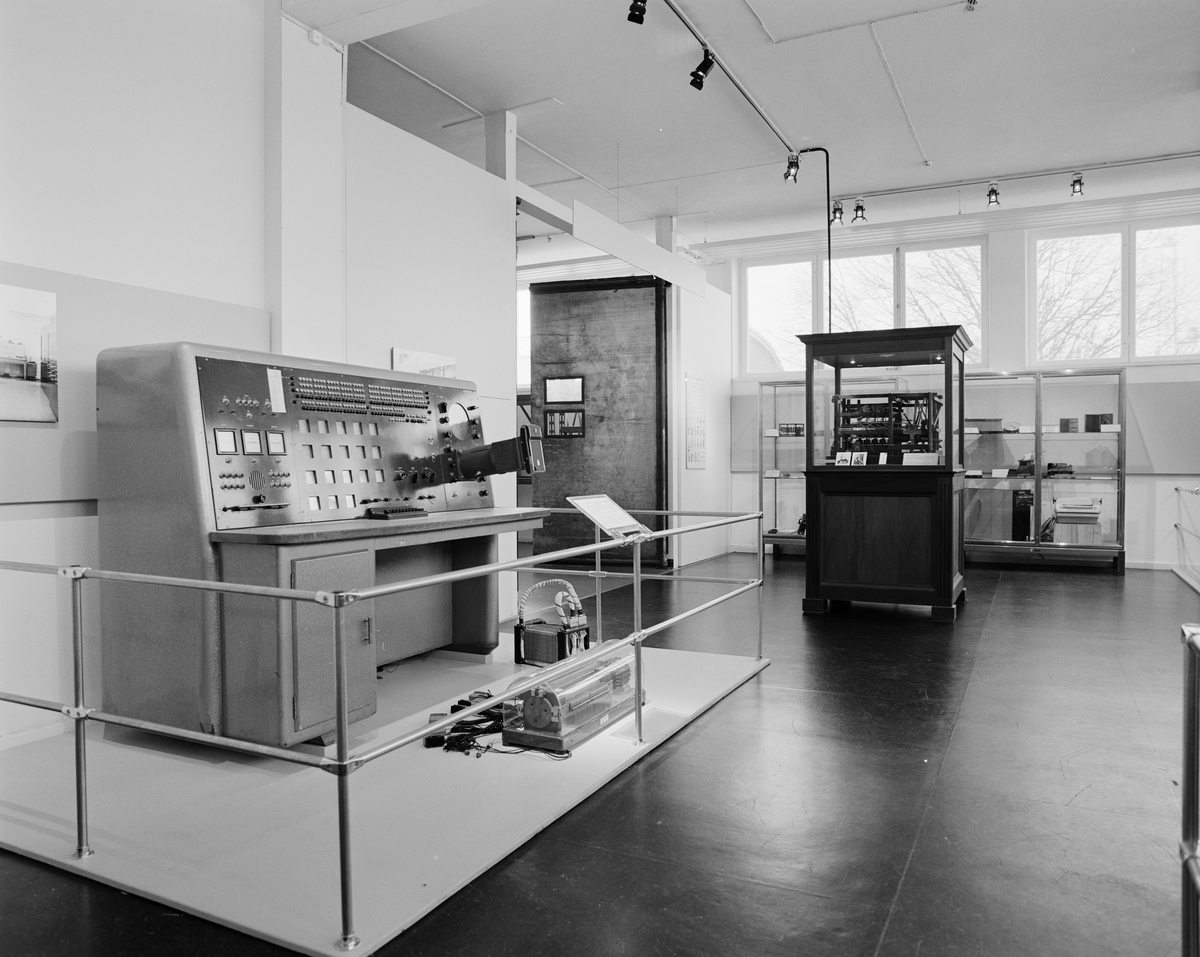 Datautställning "Från kula till dator". BESK, Differensmaskinen Scheutz och montrar med diverse mekaniska räknehjälpmedel.
