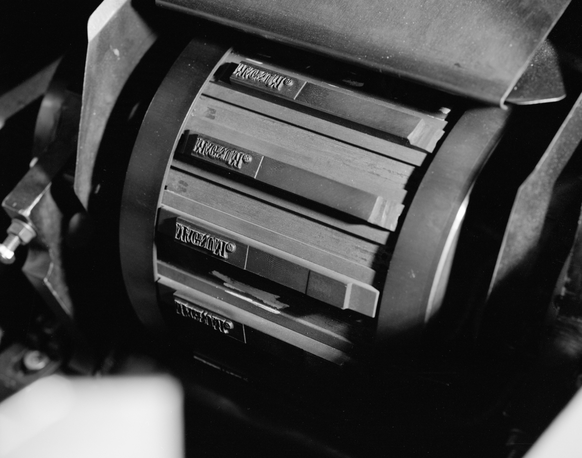 Stämpelmaskin för att brännmärka "Magnum" pinnar.