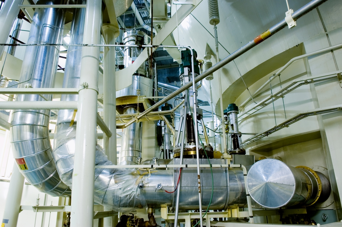 Bilden föreställer: Plan 07 rum 0745 huvudvärmeväxlare. Rörinstallation system P88 under HVVX (huvudvärmeväxlare) P62 E3g. Isolerad rörstuds var avsedd för framtida HVVX P62 E3h. Förklaring av system framgår av rapport :Statens Vattenfallsverk A23/60 5/4 1960.