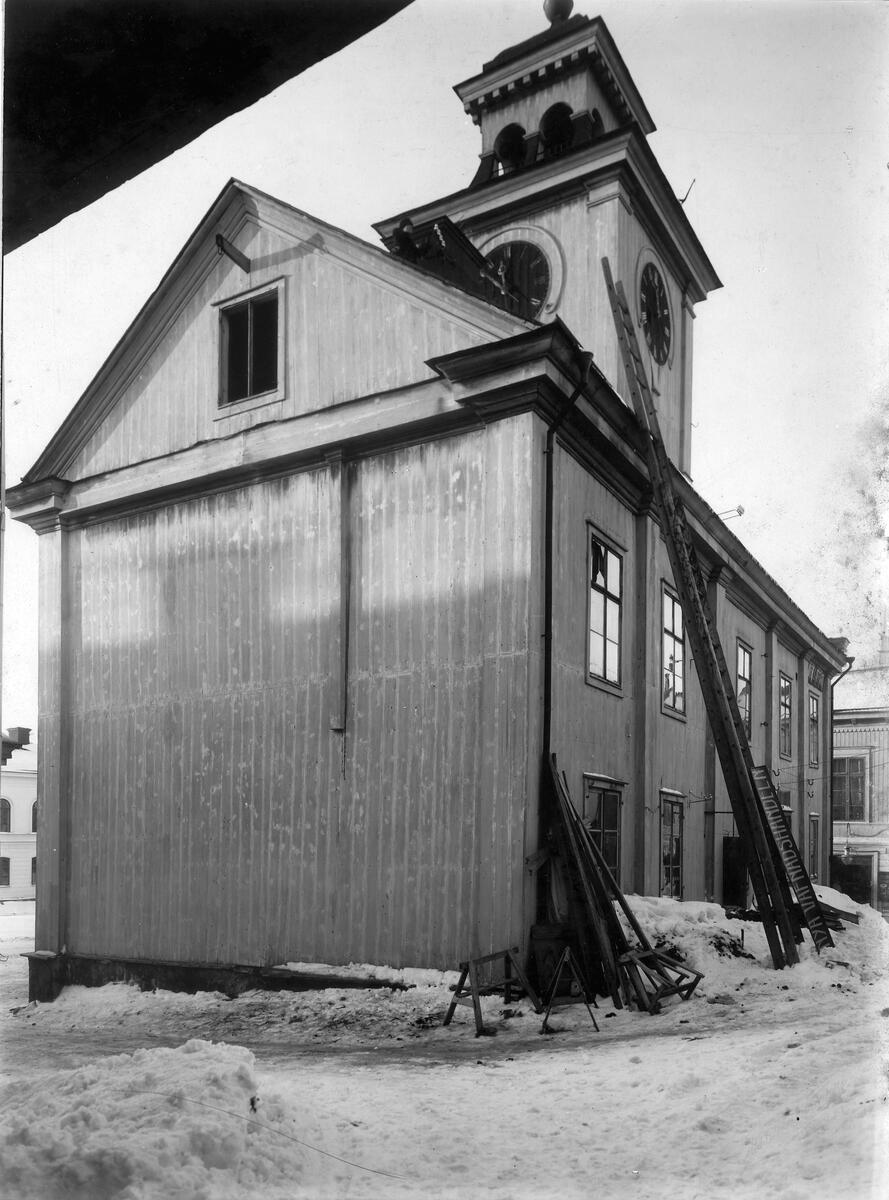 Gamla rådhuset på ursprunglig plats. Rådhuset byggdes åren 1725-1729. Det var ursprungligen en rödmålad byggnad med blåa knutar. Sitt nuvarande utseende fick rådhuset vid en restaurering 1815. Tornet ritades och byggdes av den österbottniske snickaren Hans Biskop, som även hade varit engagerad vid kyrkobygget i staden. I tornet installerades ett Stjernsundsur samt en rådstuguklocka för vårdringning. På övervåningen låg magistratens lokaler med rådstugusalar, arkiv och förmak. Här fanns även rum för övernattning. På bottenvåningen låg stadskällaren. Under åren 1827-74 hade Härnösands sparbank sina lokaler i rådhuset.Som rådhus användes byggnaden fram till 1882. Den flyttades till Murberget 1920 eftersom huset då skulle rivas och ge plats för Sundsvallsbanken, nuvarande Nordea.