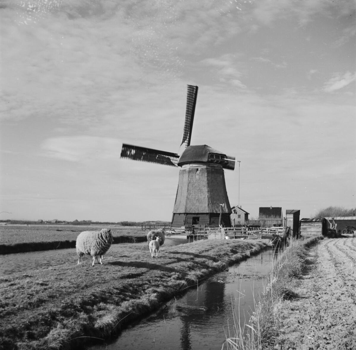 Väderkvarn söder om Zuiderzee, (nuvarande IJsselmeer). Tyskland-Holland-Belgien 1938. IJsselmeer är en insjö i Nederländerna som uppstod genom uppförandet av en dammbyggnad i Zuiderzee, en vik av Nordsjön.
