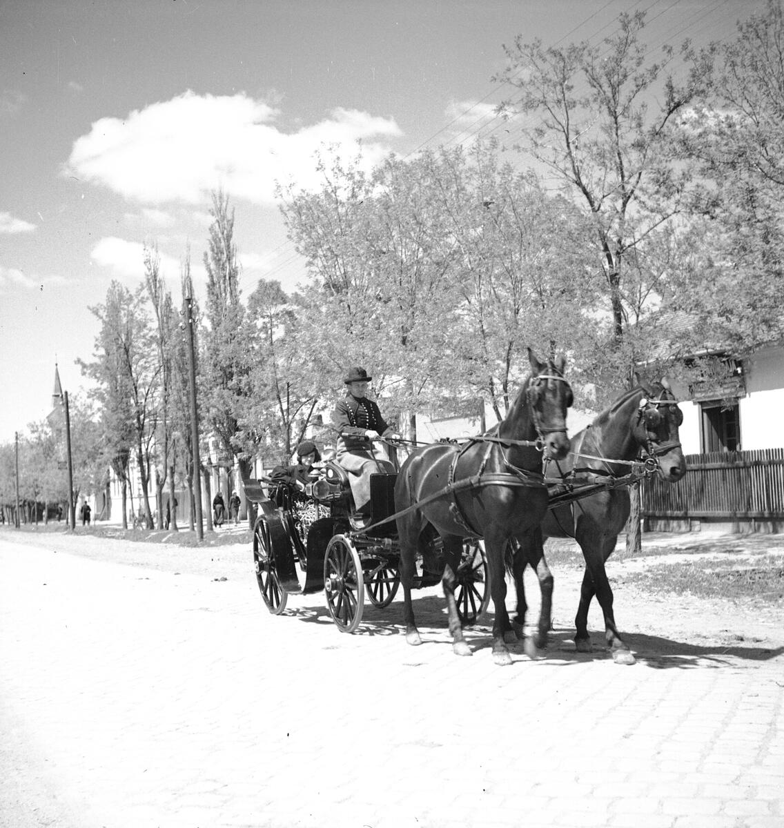 Häst med vagn i Ungern. Tjeckoslovakien-Ungern-Österrike 1935.