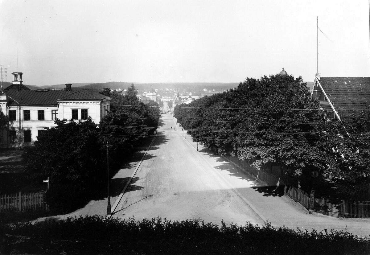 Stadsgata mot NV, till vänster Flickskolan, vykort från början av1900-talet.