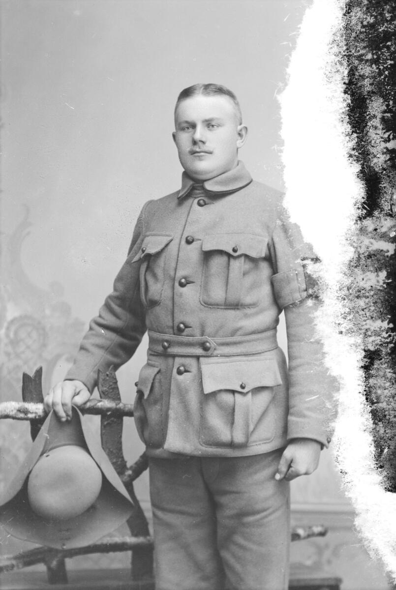 Volontär Nummer 18 Femte kompaniet C J Hartsson; Ingår i porträttsamlingen från Knut Wallins ateljé.