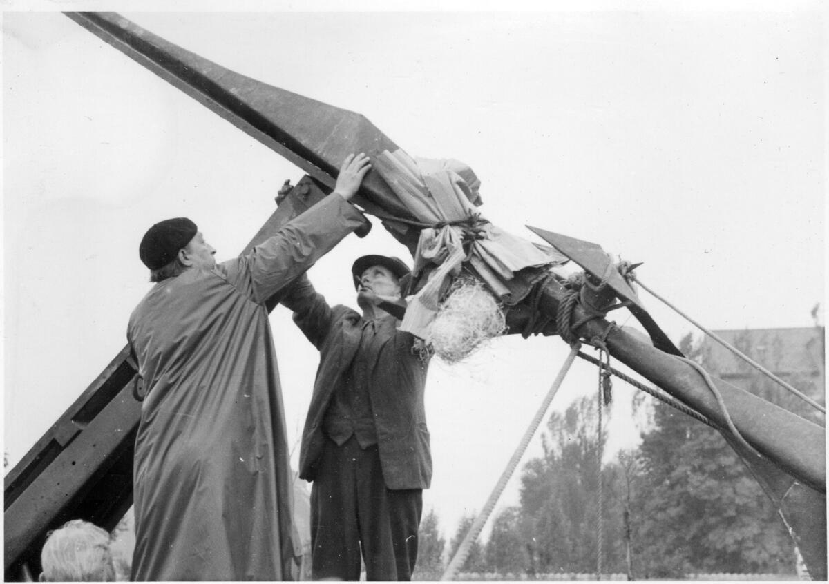 Montering av skulpturen Vertikal komp.
