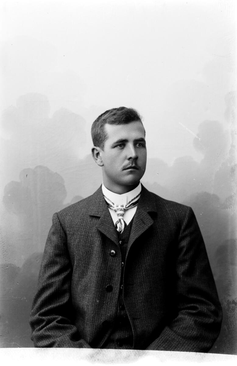 Titel: K E Karlsson; Frånö; Ingår i porträttsamlingen från Knut Wallins ateljé.