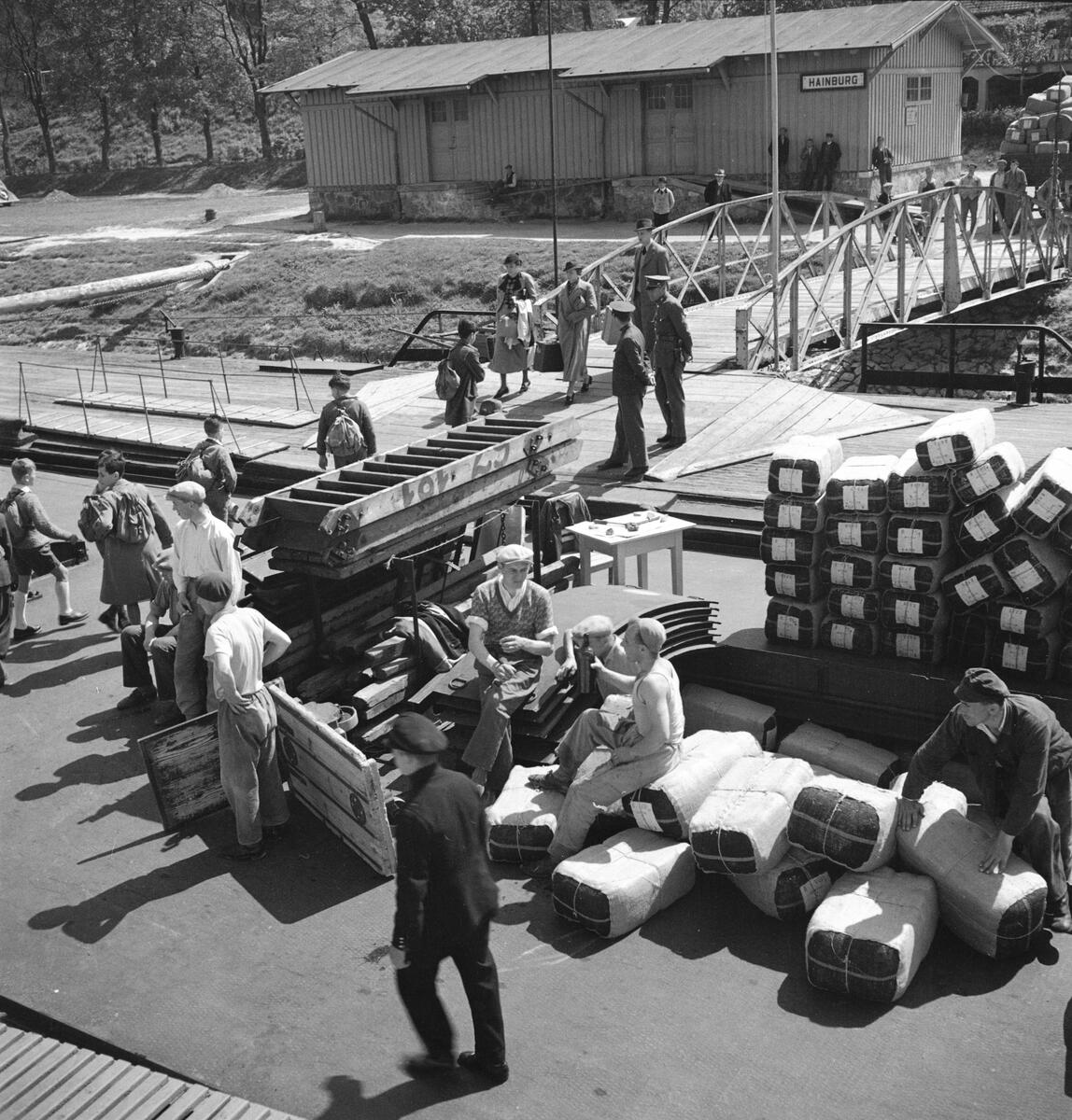 Hainburg an der Donau i Österrike. Lastning och lossning av gods. Tjeckoslovakien-Ungern-Österrike 1935.