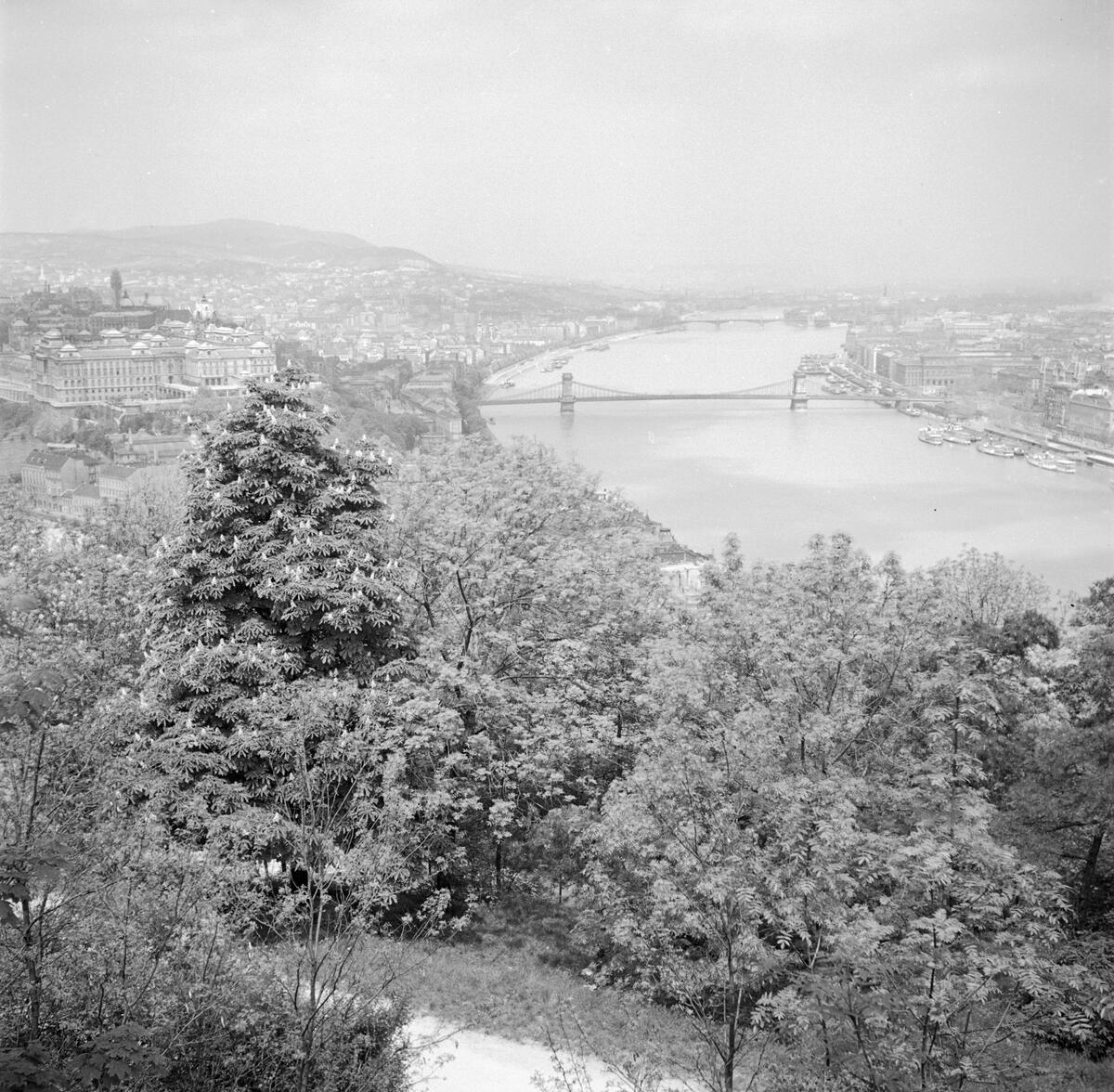 Vy över Budapest med broarna över Donau. Tjeckoslovakien-Ungern-Österrike 1935.