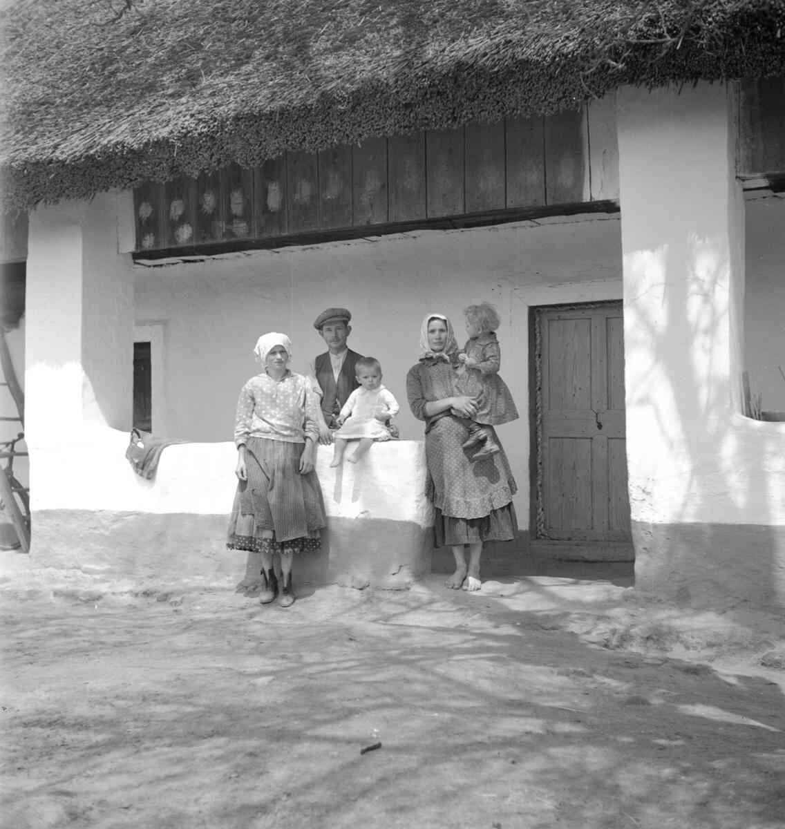 Ett familjeporträtt vid ett hus i Vörs. Tjeckoslovakien-Ungern-Österrike 1935.