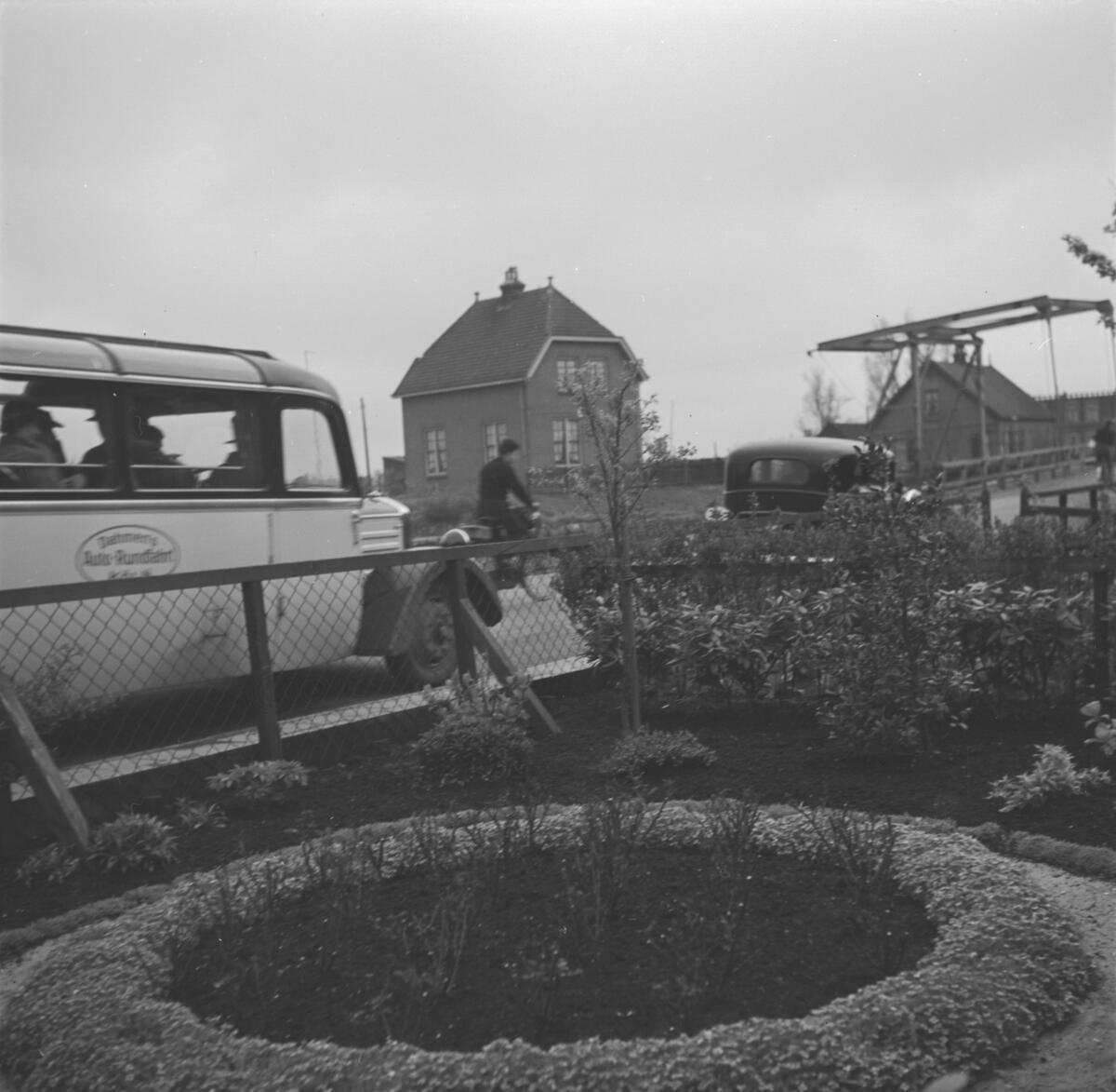 Trädgårdsplantering i Aalsmeer. I bakgrunden står resesällskapets buss. Tyskland-Holland-Belgien 1938.