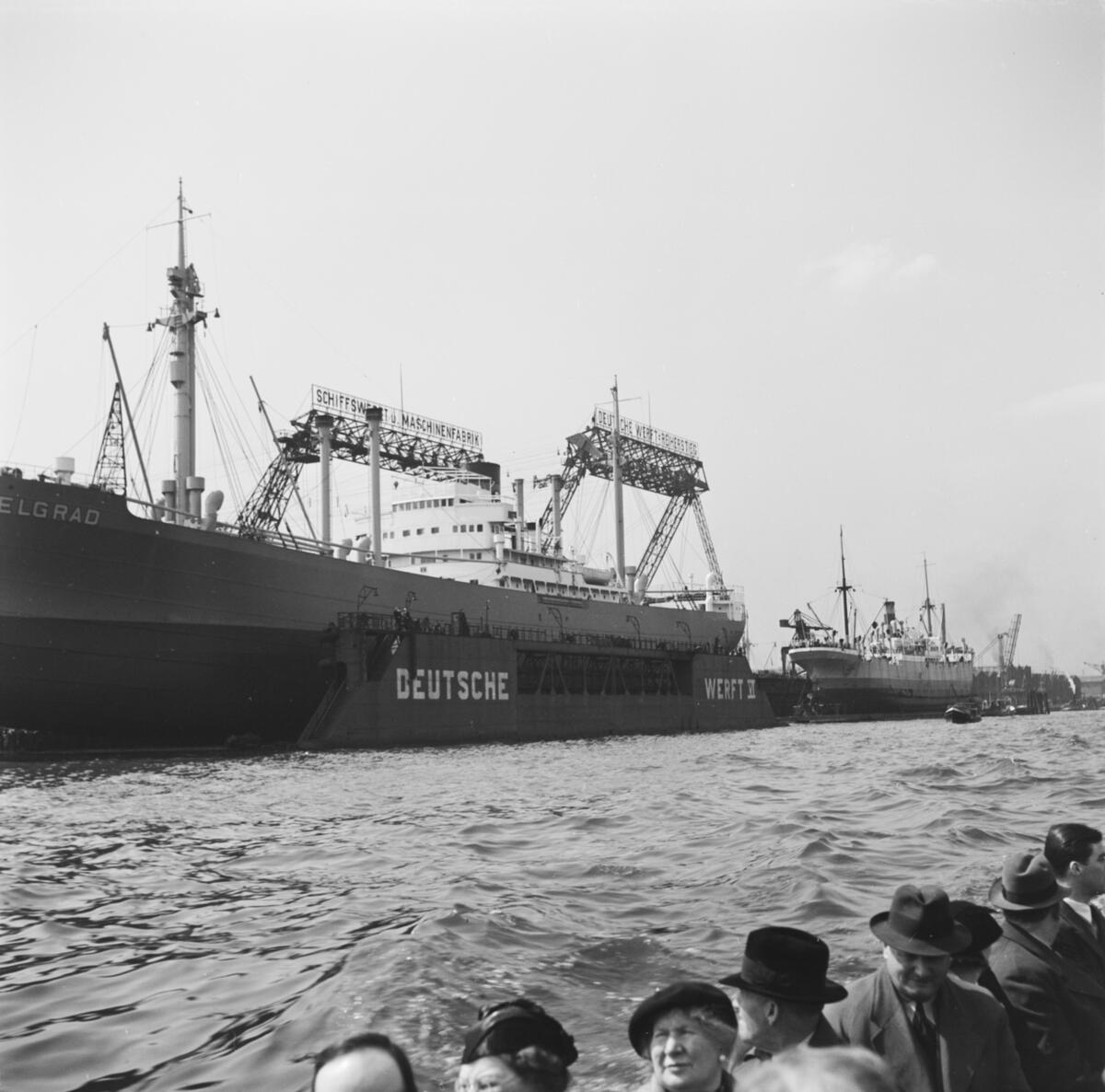 Deutsche Werfts varvsanläggningar i Hamburg. Tyskland-Holland-Belgien 1938.