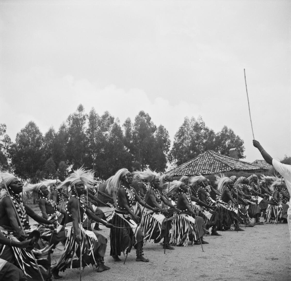 Dansande watutsier. Belgiska Kongo (idag Kongo-Kinshasa). Afrika.