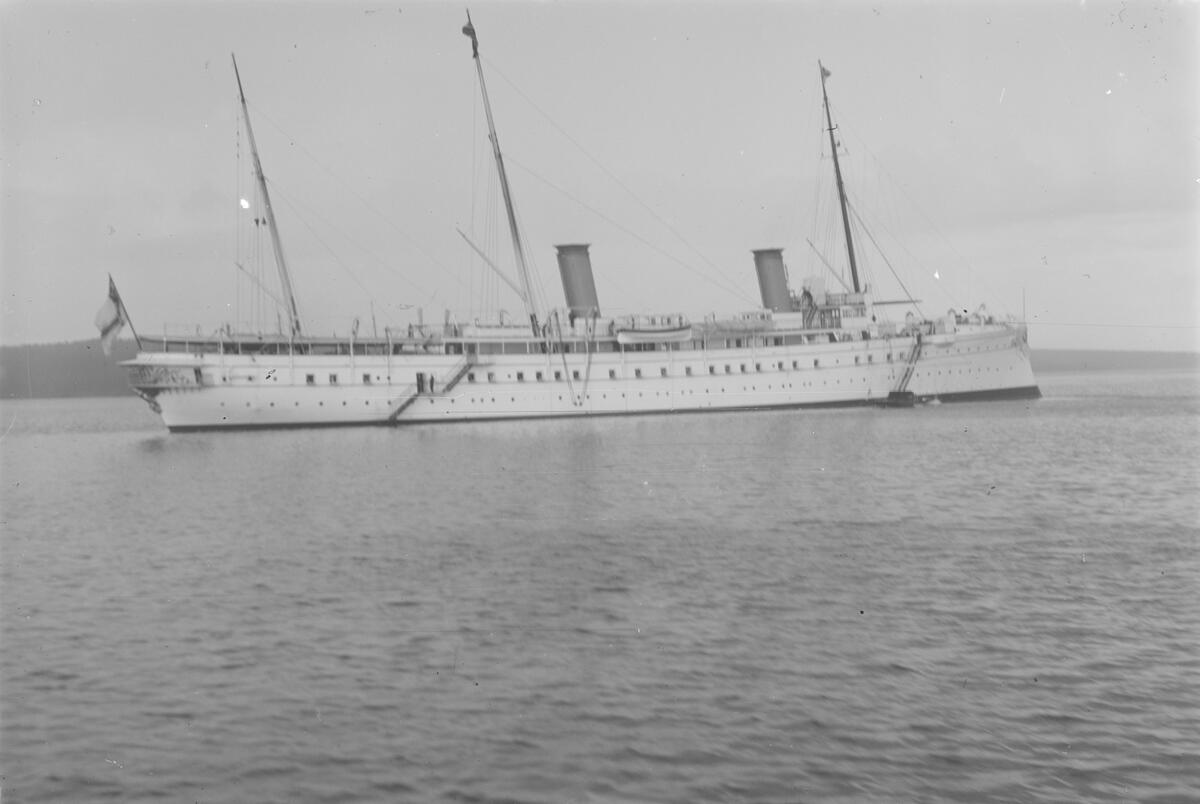 Den tyska kejserliga jakten HOHENZOLLERN II i Härnösand under det tyska flottbesöket 1905.