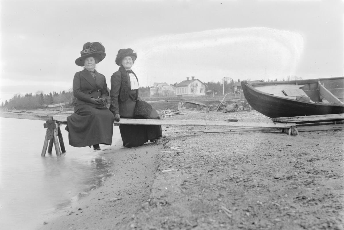 Två kvinnor som sitter på en brygga.