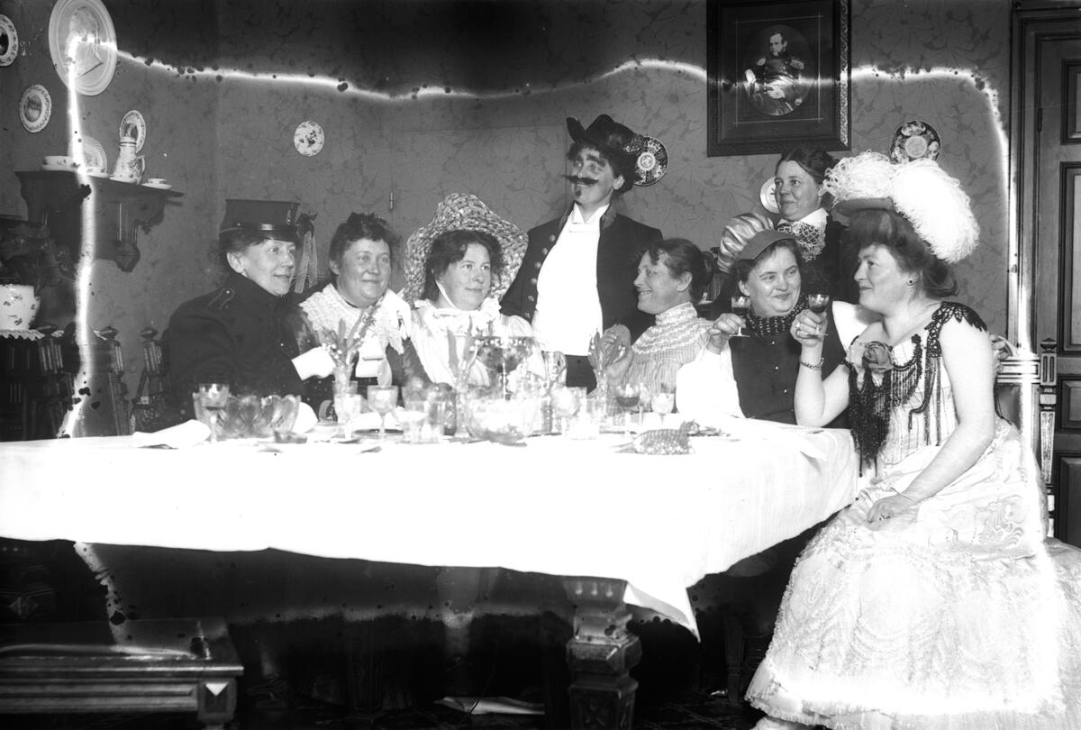 Ett grupporträtt av en teatergrupp som består av åtta kvinnor.
