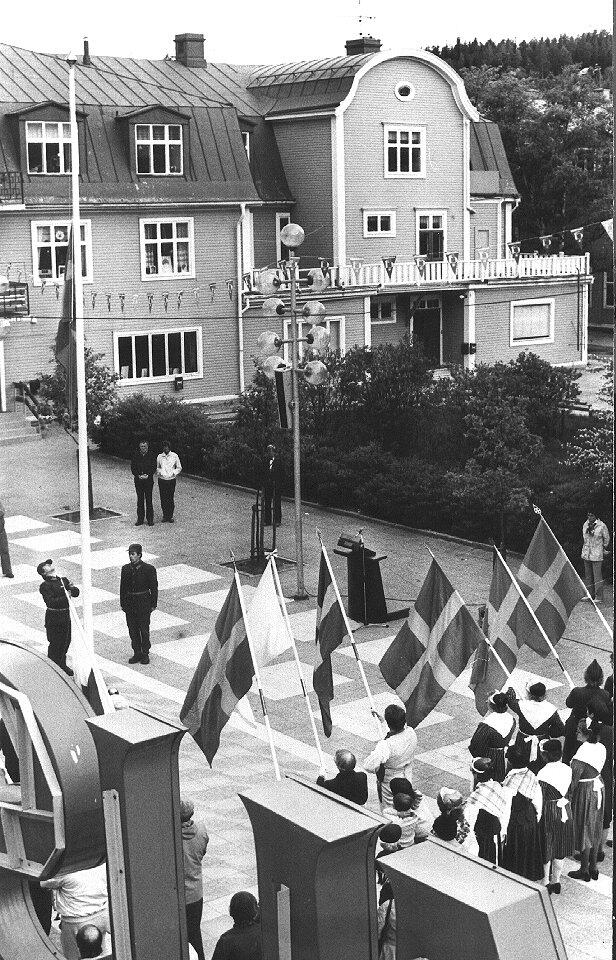 Torget "Oasen" med Wikströmska huset i bakgrunden.