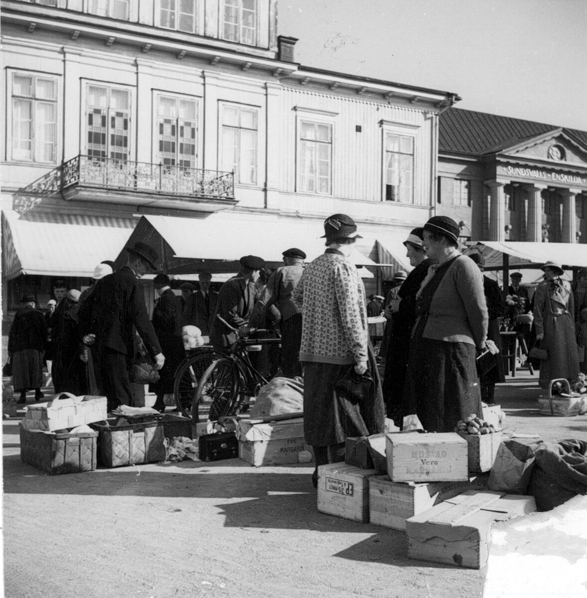 Torghandel, i bakgrunden Sundsvallsbanken och f.d. Edelswärdska huset.