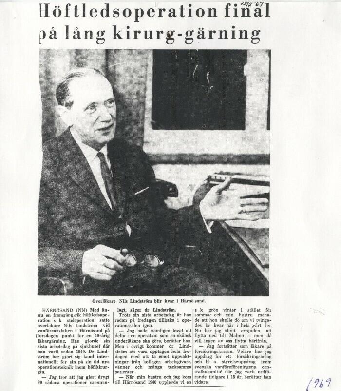 Titel: Tidningsartikel från Nils Lindströms sista arbetsdag