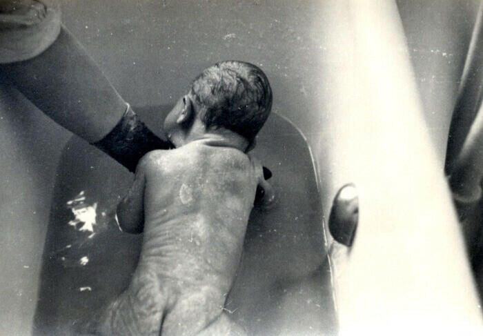Nyfött barn badas